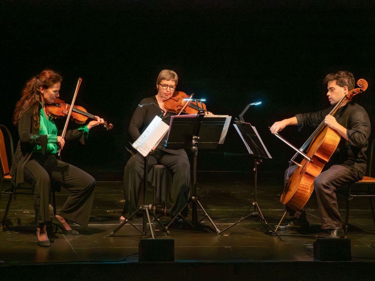 para ensaios de emergência com Gonçalo antes da grande noite.No sábado, o programa do trio de cordas de peças de Mozart e Beethoven foi totalmente sublime. Na atmosfera amigável do Teatro Mascarenhas Gregório em Silves, era o ambiente perfeito para uma noite perfeita
