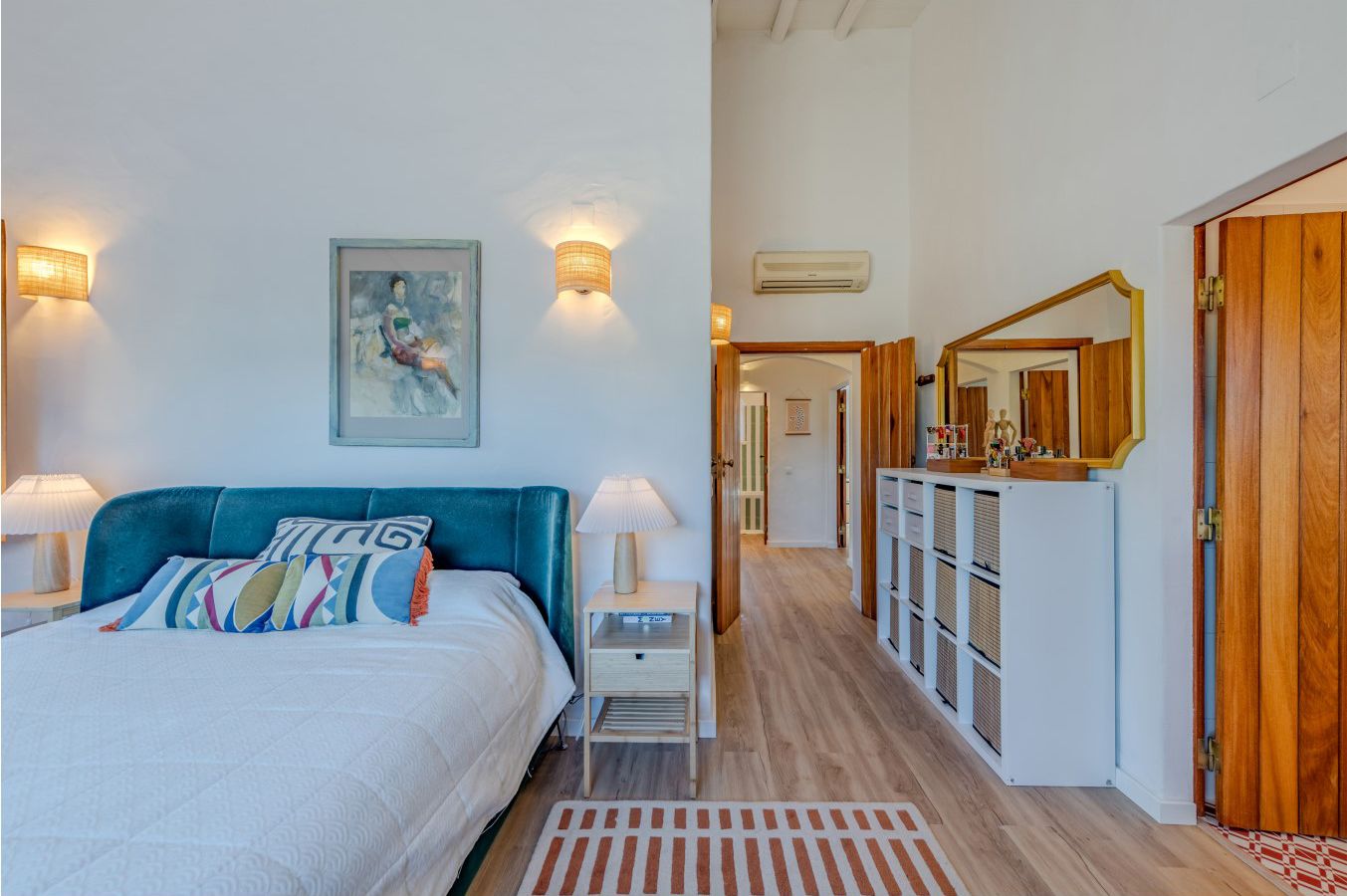 Die einzigartige Familienvilla öffnet sich in eine helle Eingangshalle, in der natürliches Licht mühelos durch das ganze Haus fließt und das Gefühl von mehr Raum durch die eleganten weißen Decken entsteht. 4 geräumige Schlafzimmer (1 en-suite mit Klimaanlage und 1 mit Einbauschränken) mit viel natürlichem Licht, alle mit elektrischen Heizkörpern an den Wänden und einem großzügigen Duschbad.