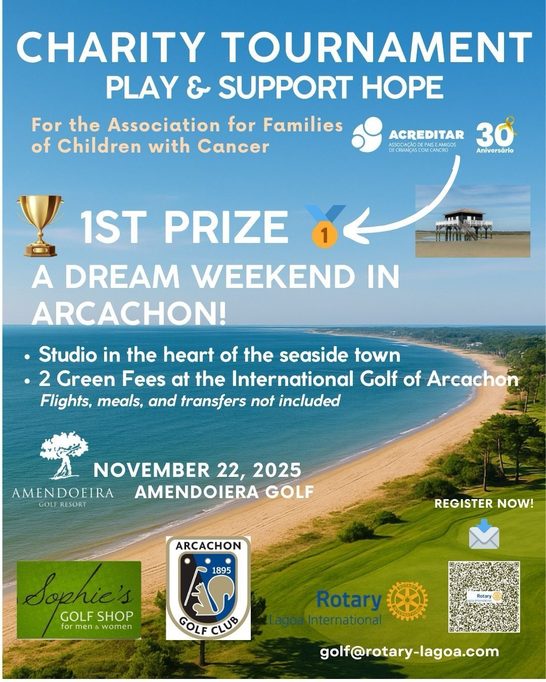 Celebrando su 30 aniversario, Acreditar continúa su misión vital de apoyar a los niños que reciben tratamiento contra el cáncer y a sus familias en todo Portugal. El Rotary Club de Lagoa se une a esta causa reuniendo a golfistas y simpatizantes en una jornada dedicada al deporte, la solidaridad y la esperanza.
