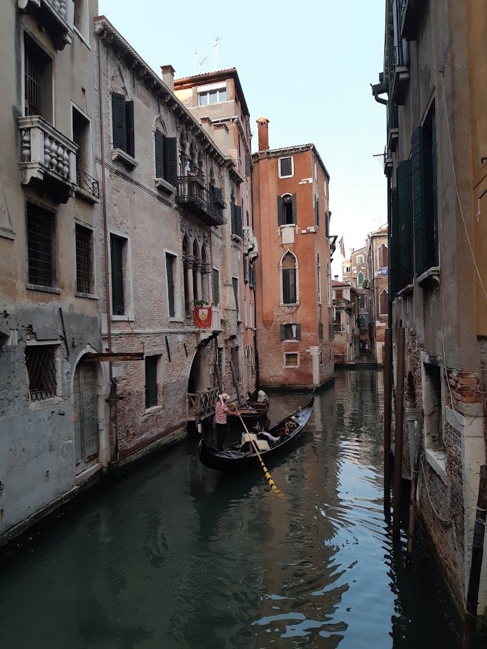 Mi sembrava di entrare in un altro mondo. Barche dappertutto, gondole che passano sotto ponti romantici, strade strette, splendidi edifici che si riflettono nell'acqua. Non sembrava di essere nella vita reale. Non sorprende che Venezia sia chiamata la Città dei Canali, la Città Galleggiante o la Città dei Ponti. È semplicemente magica.