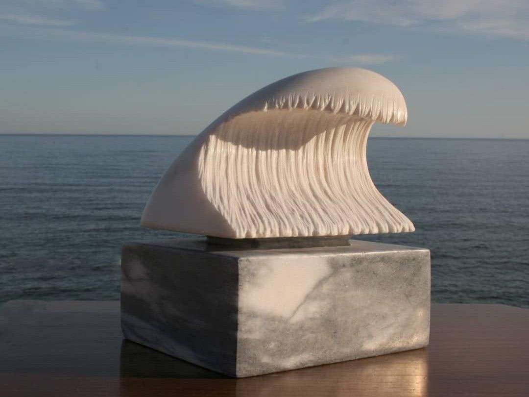 Having found her again, this time I had more time to really marvel at her marble and the first thing I noticed was her epic collection of waves carved out and captured forever mid-curl. Waves as it turns out are one of the most popular in her repertoire and like all the swells that are eternally crashing onto the sea shore, each one of her beautiful stone waves are completely unique. Underneath she had a forest of cute little marble trees (although she’s also made some pretty BIG trees, more on that later..). There were also imaginative moons and quirky faces as well as plates of various different sizes and shapes.