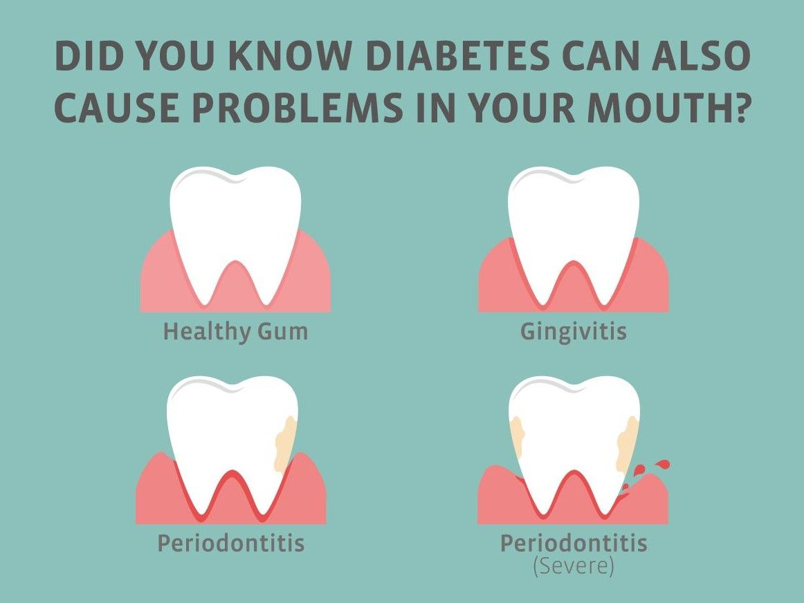 Having prolonged high blood glucose levels can increase the risk of oral health problems, such as gum disease, also known as periodontitis.