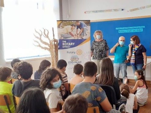 Following the lifting of Covid restrictions, the Club was delighted to return to “normal” this year and deliver the books to the children in person. 60 pupils received the dictionaries to help them with their education.