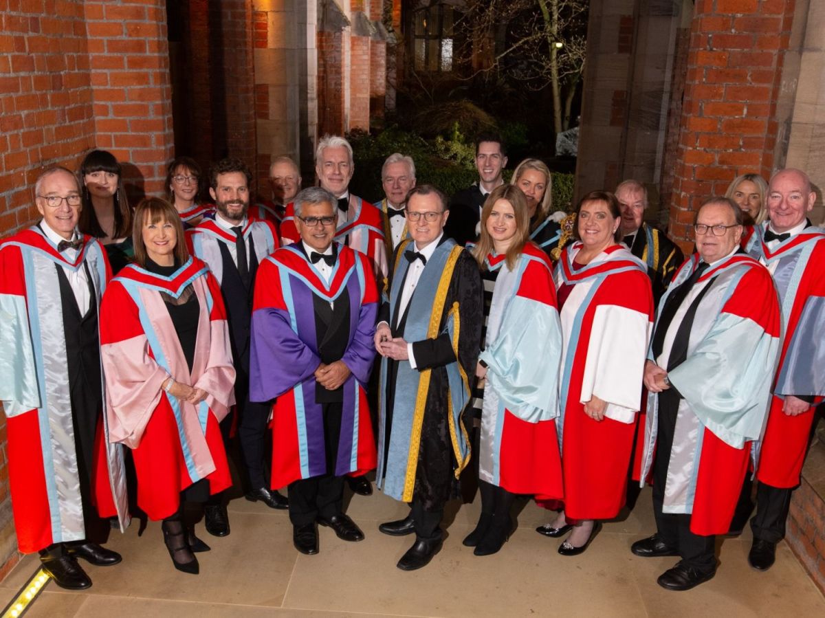 Nine honorary graduates from QUB were acknowledged, including Dornan, for their achievements in the areas of business, education, medicine, the arts, sports, public service, and the local community.