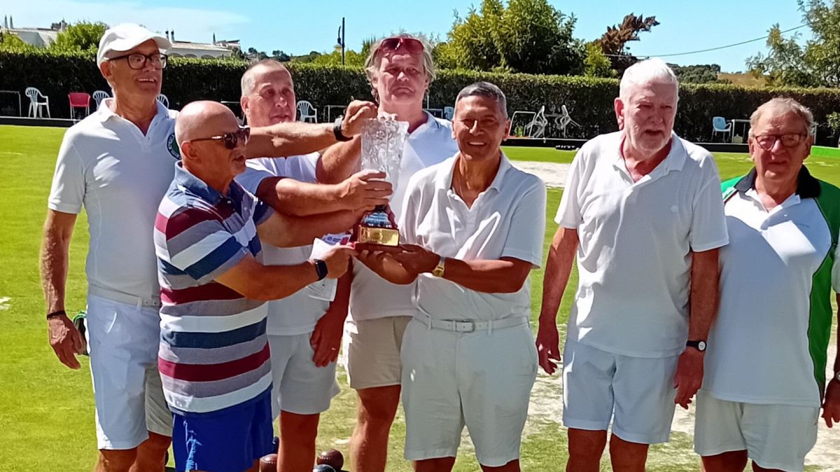 An international line-up of 64 players from the Algarve, the UK, Ireland, and Holland competed in the competition. Following an initial round-robin stage, the bowlers were streamed into two groups for the knock-out stages. One group continued in the main Tournament won by Bob Hillier and Maggie Dance, after Maggie stepped in for Dave Brock part-way through the knockout stages. The remaining bowlers entered a subsidiary Plate won by Mark Townsend and Barry Holbrook. Whilst the weather was mixed the bowlers enjoyed the bowling and the social side of the Tournament. The 2025 Tournament will run from 24th to 29th March and entry details will be available on the Club website (alvorbowlsclub.com).
