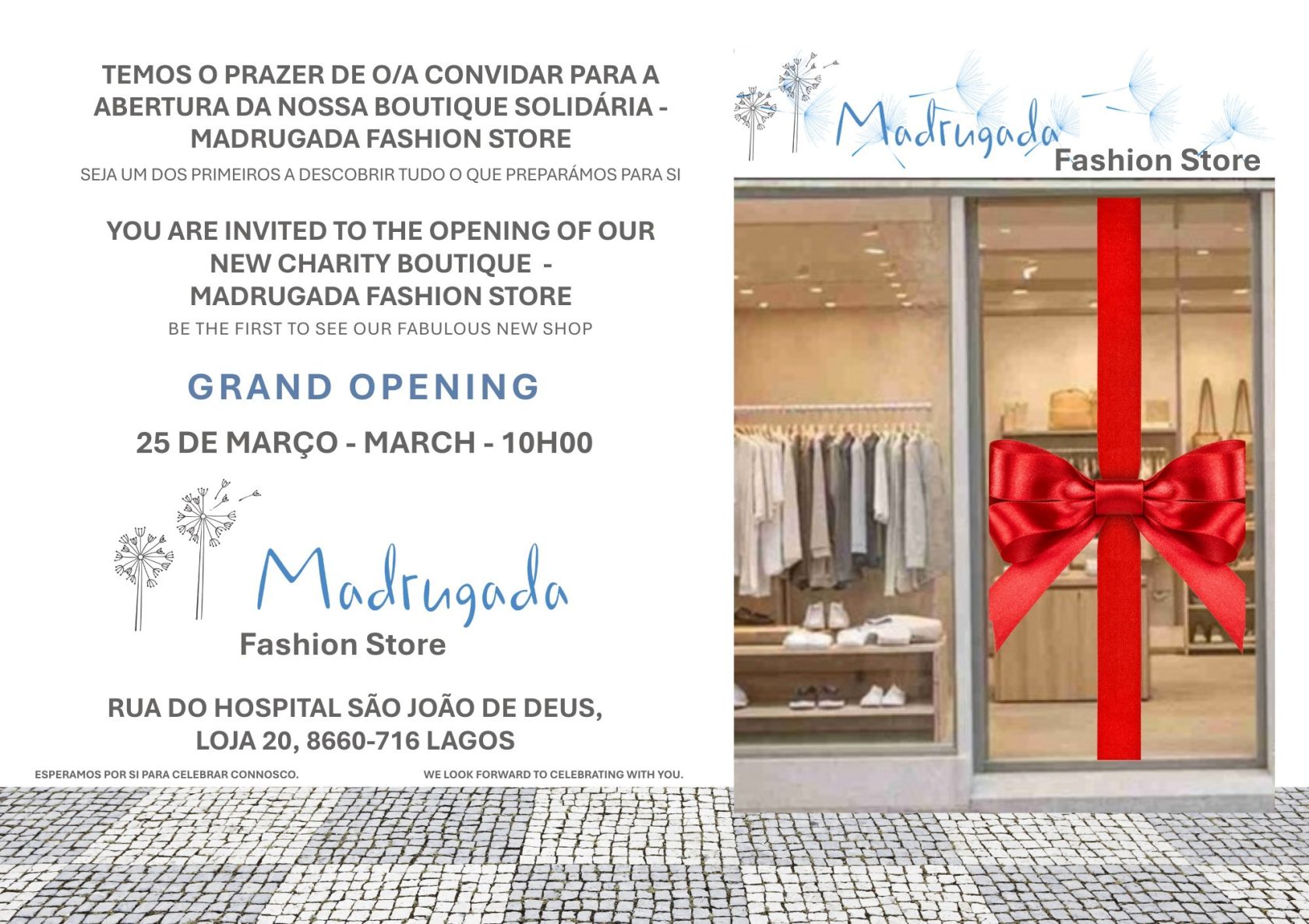 A mudança surge no momento em que a Associação se viu obrigada a encontrar novas instalações comerciais, na sequência da venda iminente do espaço arrendado na Praia da Luz. Durante muitos anos, a pequena, mas muito popular, boutique de moda Encore, na Praia da Luz, contribuiu com sucesso para a missão da Madrugada. Tanto os visitantes como os habitantes locais sabiam que podiam esperar encontrar moda em segunda mão bem cuidada a preços excelentes. A Associação está entusiasmada com a perspetiva de que a sua nova loja de moda, muito maior, em Lagos, atrairá ainda mais clientes e levará a sua oferta de valor a um público totalmente novo.