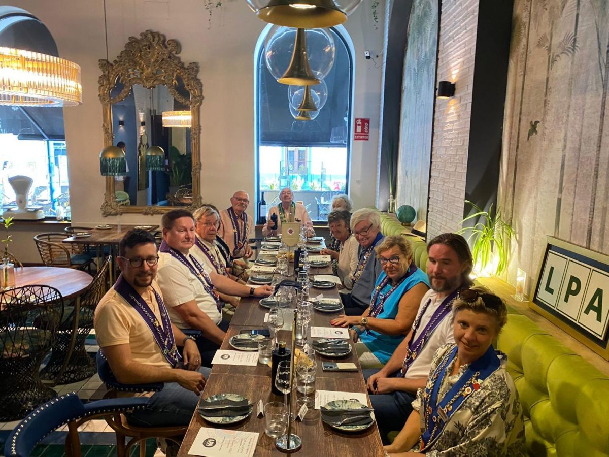 Gruppen fortsatte sin resa och återvände till Portugal för den andra spelplatsen, golfanläggningen Monte Rei i Vila Nova de Cacela. De välkomnades av sin medbror och anläggningens vd Salvador Lucena, Officier Maitre Hotelier. Den rymliga anläggningens lugn och ro fräschade upp sällskapet innan de samlades för middag i restaurangen "Vistas", som har en välförtjänt Michelin-stjärna. Kocken Rui Silvestre hade skapat en spännande meny och sommelier Nuno Pires hade valt ut de åtföljande vinerna. Efter välkomstdrinken och amuse bouches började måltiden med en grönsaksrätt med basilika, citron och olivolja tillsammans med Quinta dos Cavalhais, 2021, följt av tonfisk med ostronmajonnäs, blomkål och wasabi tillsammans med Alfaiate 2020 och fortsatte med en rätt baserad på en fiskrätt från Azorerna som liknar bouillabaisse och som traditionellt begravdes under jorden i 12 timmar för att få fram smaken.