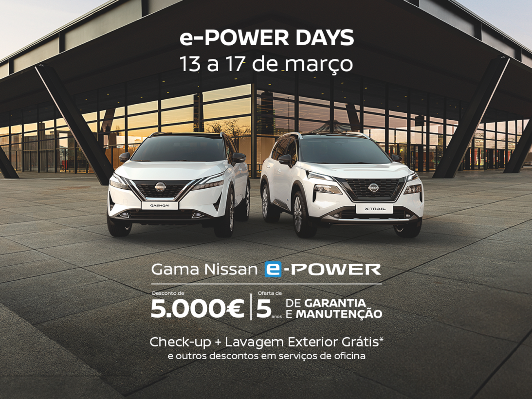 Mellan den 13 och 17 mars kan du få 5 000 €* rabatt och 5 års garanti och underhåll när du köper en Nissan Qashqai e-Power eller Nissan X-Trail e-Power.