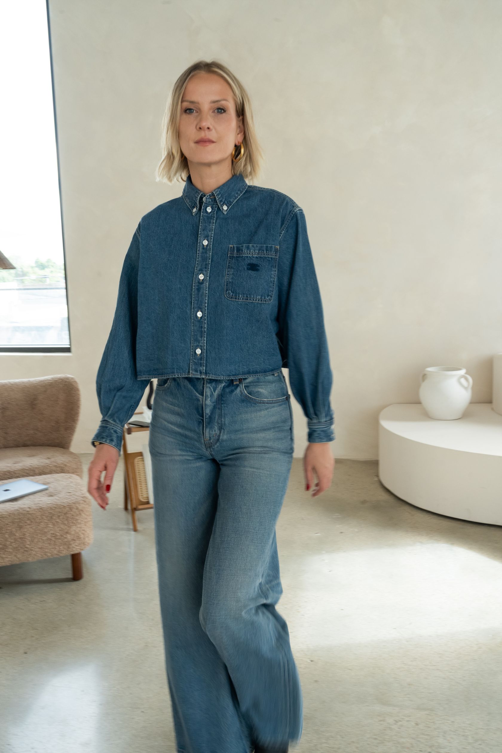 Robb säger att när man arbetar med enkla plagg är proportioner allt. "En kavaj kan göra eller förstöra en outfit", säger hon, "den ska se enkel ut, men aldrig oavsiktlig."