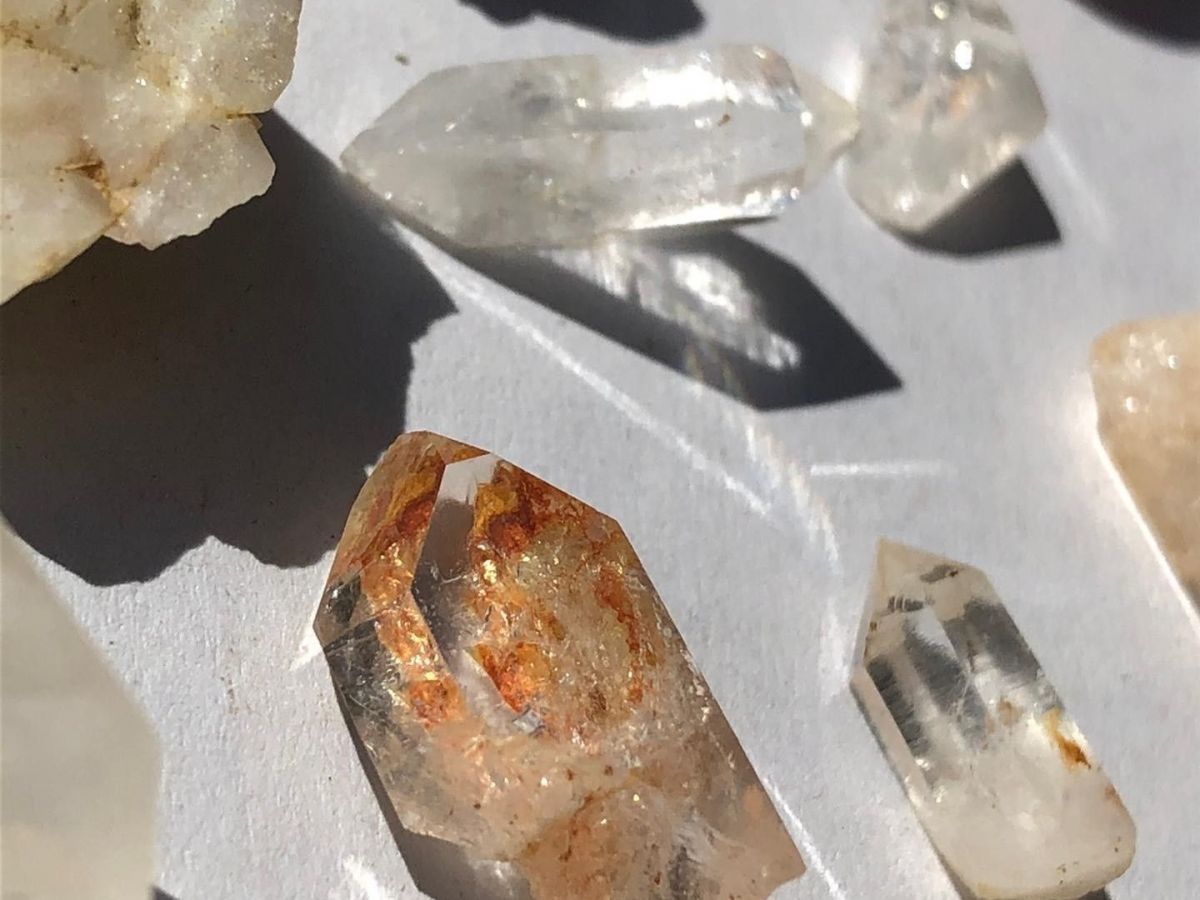 Bliss has found a vast array of quartz, “including milky quartz and clear quartz with many versions” including one she called citrine which is orange in colour. Additionally, in clear quartz she sometimes finds “what looks like it has blood inside as well as clear quartz with fossilised moss but she affirmed that the best one she has found is clear quartz with rainbows inside which she explained happens when crystals get damaged and they get fractured inside and, in these fractures, they refract light, creating a beautiful rainbow.”